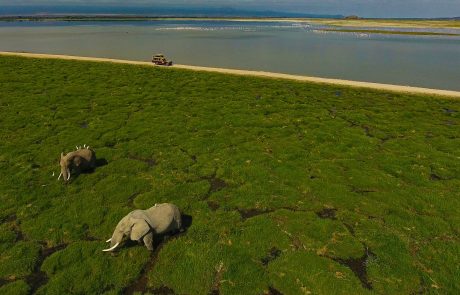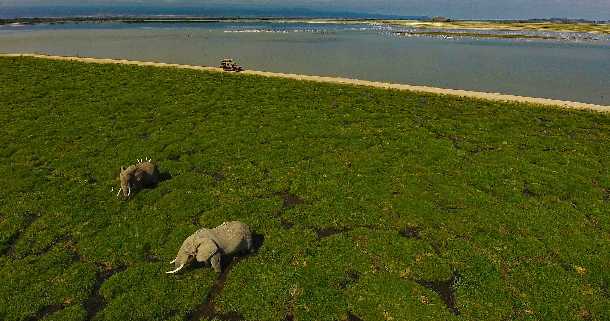 - The Amboseli Lake basin, attracting flamingoes.