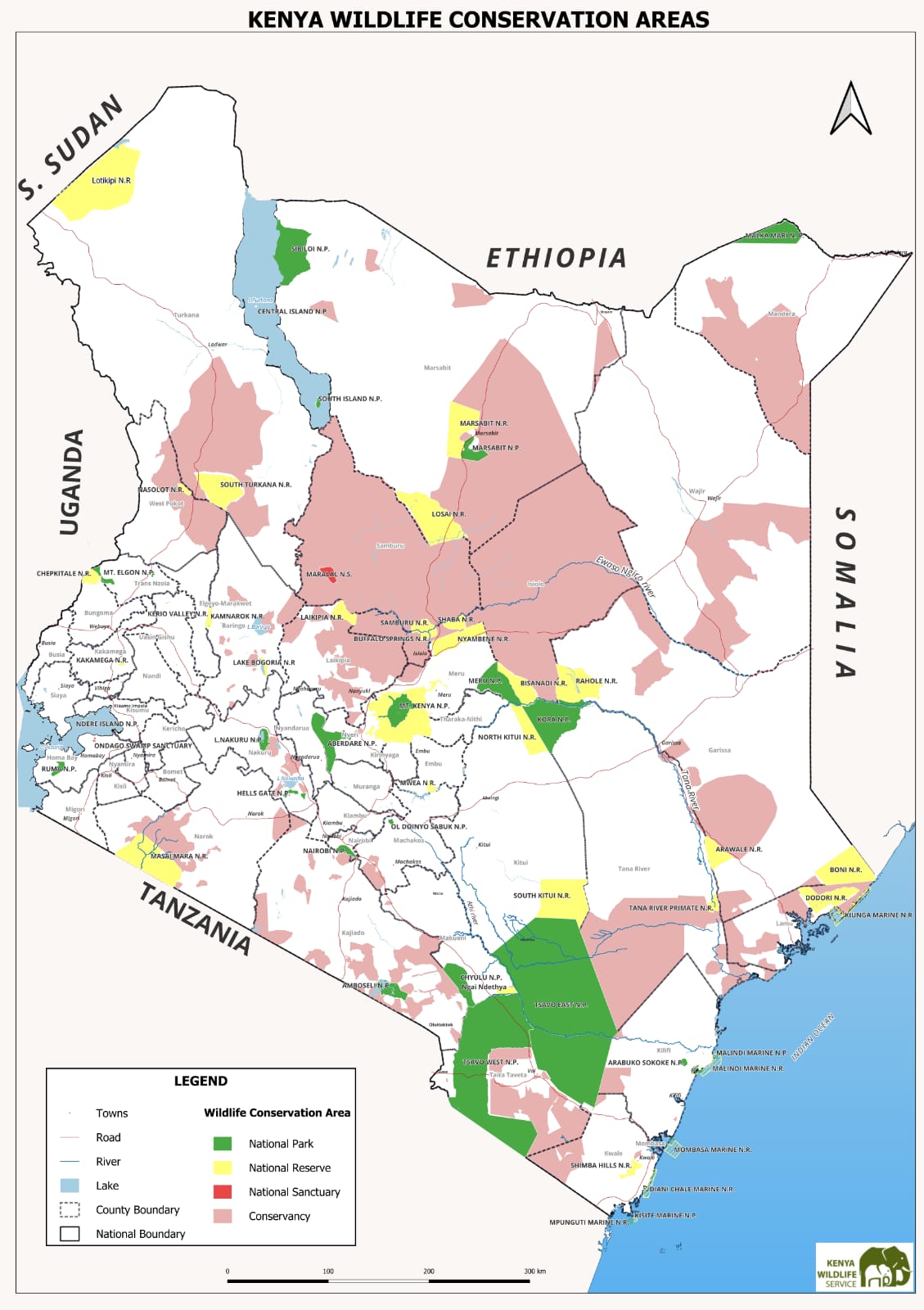 For effective management of wildlife in Kenya, we have segmented the country into eight (8) conservation areas as follows; Southern, Tsavo, Coast, Mountain, Eastern, Northern, Western and Central Rift Conservation Areas. These conservation areas is a devolved structure where we conserve biodiversity through protected area systems in form of National Parks, National Reserves and National Sanctuaries which covers 8.2% of Kenya’s land mass;